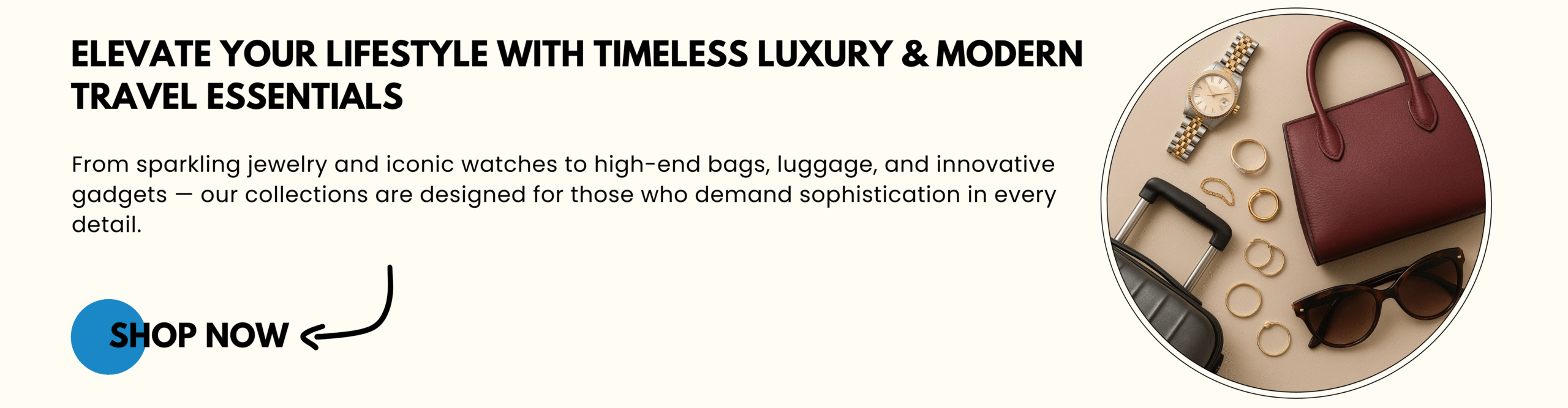 Welcome to Dealtyme Luxury & Travel — your destination for timeless luxury and travel essentials. From fine jewelry and watches to designer bags and premium luggage, we bring you curated collections that combine elegance, style, and adventure.